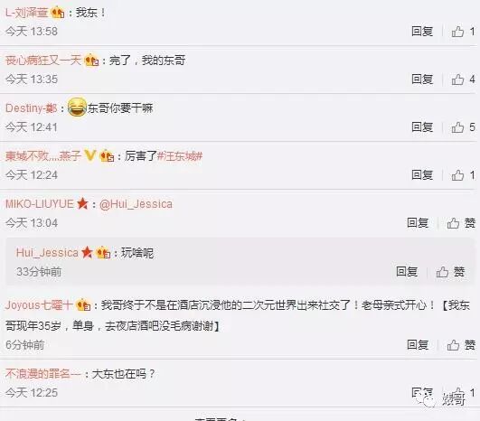 还有网友说:我哥终于不是在酒店沉浸他的二次元世界出来社交了!老母亲式开心!【东哥现年35岁,单身,去夜店酒吧没毛病】
