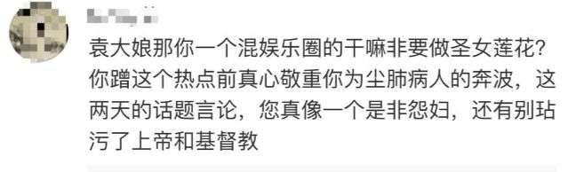 但也有很多网友都认为袁立纯属是有病,啥事都要插一脚,像一个怨妇一样在网上谩骂,就是在蹭热度......