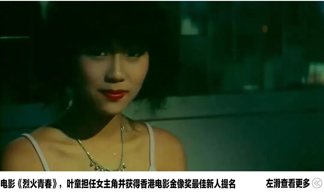 叶童:很难说哪一些最经典,因为每个角色我都投入了很多我的感觉在里面,应该公平地对待他们。当然会有几个阶段是很特别的,不然我不会走到今天。第一个阶段是我的第一部作品《烈火青春》,它让我有机会踏入电影这个行业。那时我真的就是学校刚出来的一个小女生,那部电影也让大家认识我、认同我,让我后来一直有演出的机会。