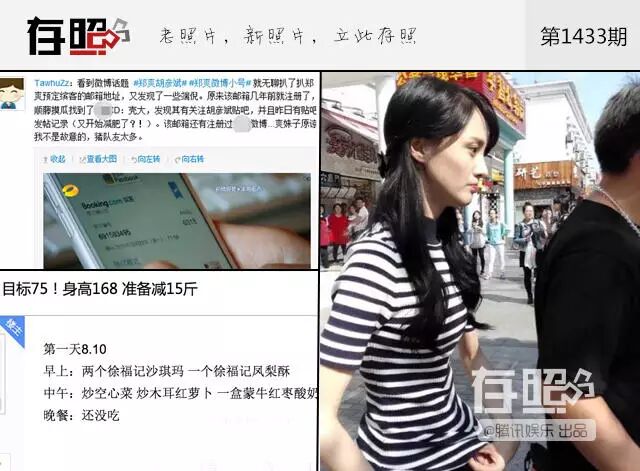 郑爽的小号唯一关注的贴吧就是胡彦斌吧,更让人诧异的是,身材已经极为纤细的她,发出的大部分帖子都是关于节食减肥的。不仅晒出了减肥的食谱,还暴露了自己的目标体重是75斤,这样病态求瘦的状态也让一众粉丝担心不已。