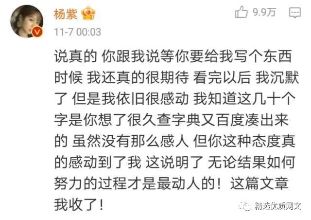 紧接着,杨紫开始数落起张一山了,认为他这段长文祝福语,是依靠查字典和百度凑出来的。这言外之意质疑张一山的写作水平啊。最后,她还给张一山上了一课,不管结果如何,努力的过程才是最动人的!
