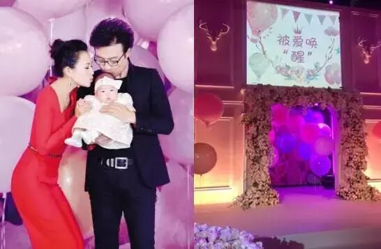 为女儿办百日宴时身穿红色连身裤出席,身材已经恢复的七七八八。