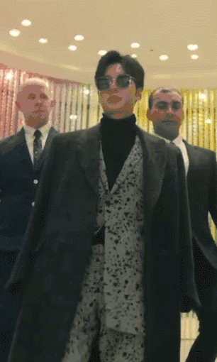淡紫色大衣和太阳镜已经显示出了粉色俊宰的潜力了,