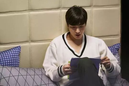 休息时间里也认真的在看台本,