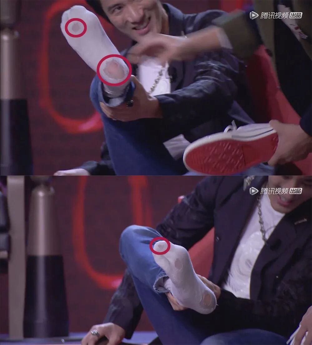 他上《吐槽大会》节目时,好友陶喆现场爆料他的袜子都是破的。