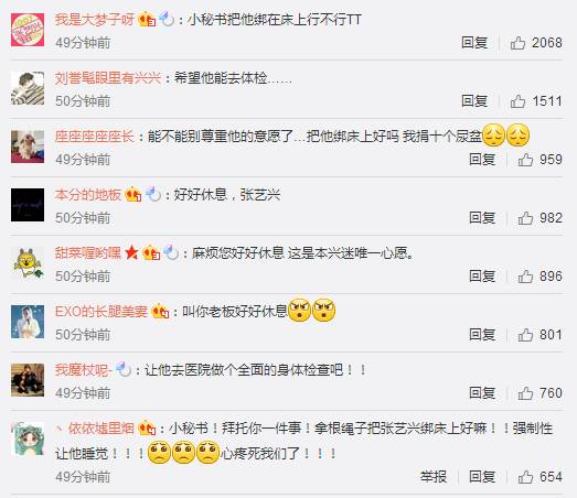 粉丝们纷纷留言希望艺兴能够得到充分的休息,