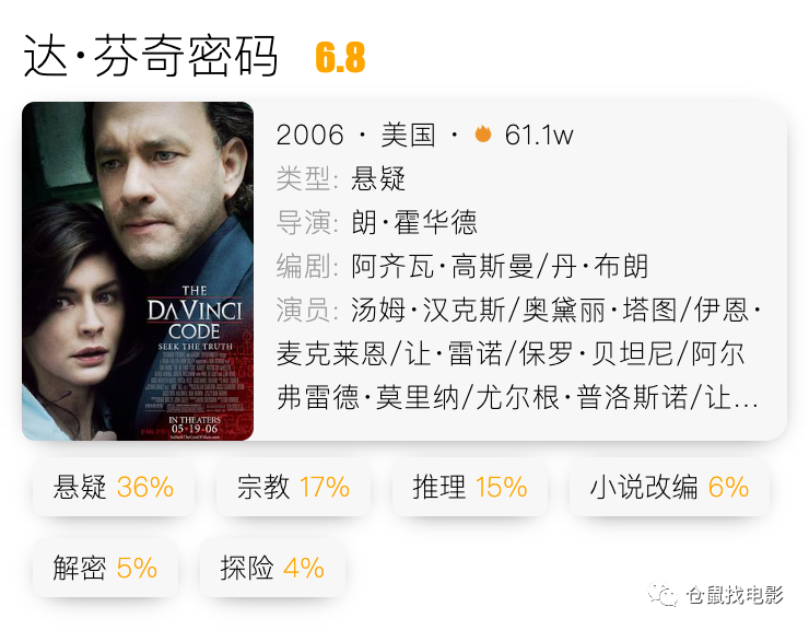 喜欢的小伙伴可以关注我们的小程序与公众号“仓鼠找电影”,我们会为大家带来更多精彩的电影内容。