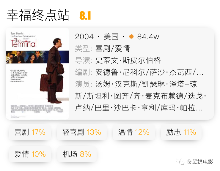 《幸福终点站》凭借对大众口味的迎合以及汤姆·汉克斯的明星形象,掩盖了它的瑕疵。