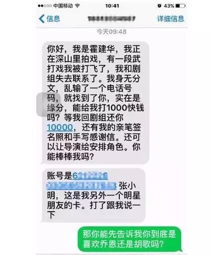 金星实力拆穿冒充霍建华的诈骗短信,理由令人信服! 冷笑话精选 港台男星 2016-04-06 22:08:33 732 创作不易,用心坚持,欢迎请BaGua喝几杯爱心咖啡!打赏并支持本文 打赏并删除本文 现在的骗子真的是与时俱进,连短信诈骗这种老掉牙的把戏还能玩出新花样……前段时间在网络上有人曝出收到一条来自“老干部”霍建华的求救短信……诈骗短信内容透露着一股浓浓的希望~霍建华此刻的心情应该是这样的▼▼▼▼ 原来是一个非常正常不过的诈骗短信,但是在金星的调侃下……故事好像朝着不同的方向发展去了……最后有亮点! 太不像话了,为什么不是打到胡歌的卡上!!!戳阅读原文浏览更多精彩笑料 创作不易,用心坚持,欢迎请BaGua喝几杯爱心咖啡!打赏并支持本文 打赏并删除本文 感谢您的支持鼓励,我会继续努力的!文章地址:用户邮箱:打赏金额:USDT 请输入数字点击”去打赏“,即可进行打赏支持本文章哦 霍建华 About the Author 冷笑话精选 功能介绍:冷笑话,热心肠!每日奉送冷笑话,微信快乐精华分享平台 Related Posts 大张伟吐槽洗衣粉广告,实在得让人不得不服啊! 2019-03-04 21:00:39 蔡依林的购物观念真让人眼前一亮,多少女孩羡慕不来的… 2018-11-05 20:20:43 关于男人画眼线这个问题,黄子韬的答案让人耳目一新! 2016-06-19 23:08:33 万万没想到,霍建华居然是这样的人…… 2016-05-14 22:13:47 金星实力拆穿冒充霍建华的诈骗短信,理由令人信服! 2016-04-06 22:08:33 发表评论