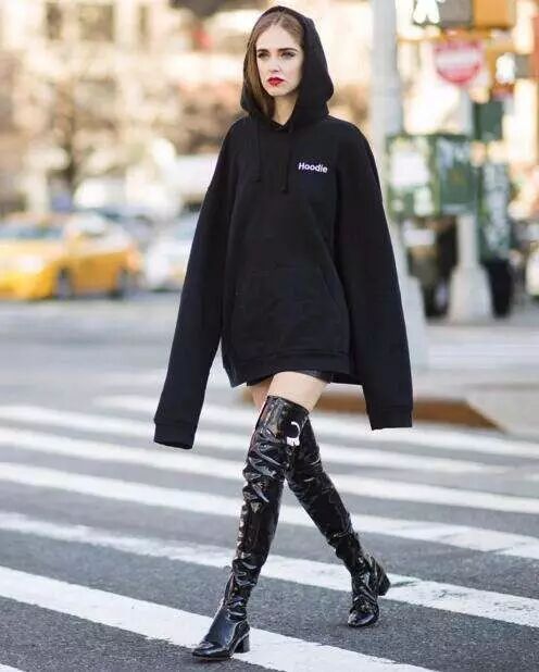 穿上Hoodie和过膝长靴就有逆天长腿
