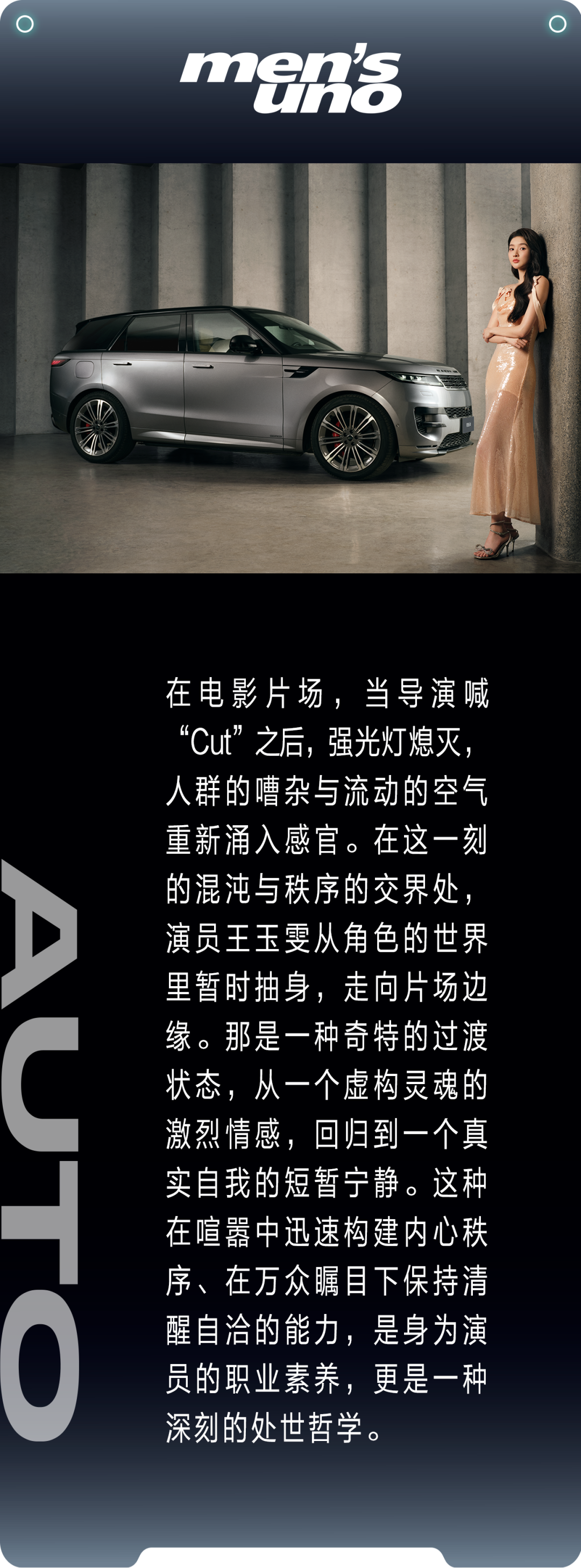 对王玉雯来说,揽胜运动不仅是承载她前往下一段旅程的交通工具,更是精神上的同路人。这台车本身,就是她所珍视的那些品质的物理化身——优雅形态中包裹着磅礴之力,静谧座舱里安放着坚定的灵魂,时刻准备着,与她一同驶向下一幕,下一个角色,下一片未知的地平线。在这场永不停歇的驰骋中,旅程本身,已然是最美的诗篇。