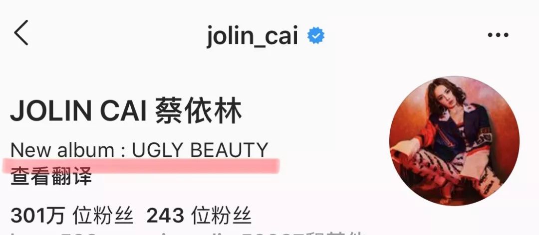 蔡依林ins官宣新专辑名称《UGLY BEAUTY》,并于昨日昆明歌迷会上,“官宣”新专辑发行日期为12月26日