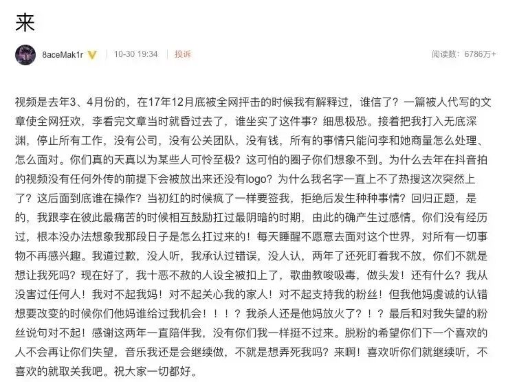 大概半个月前,他和李小璐的亲密视频传出,他发了一段让人不明所以的回应。