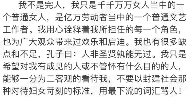 李小璐强调自己只是一个普通的女人,很委屈,不要用封建的标准来苛责她。