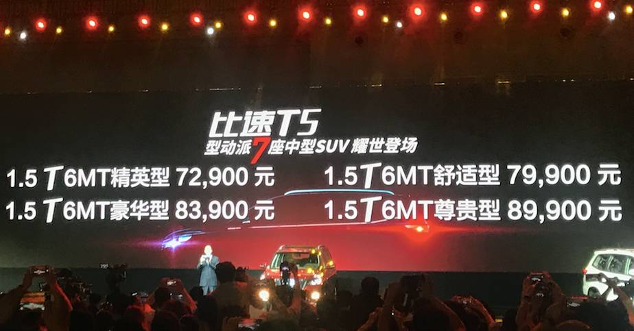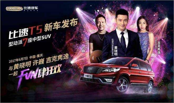 一众大腕齐齐捧场的这款车,就是比速汽车于2017年6月7日在重庆上市的“型动派”7座中型SUV比速T5。至于价格,说实话还是挺给力的,全系搭载1.5T涡轮增压发动机,匹配6MT变速箱,四款车型的售价定在了7.29万-8.99万。