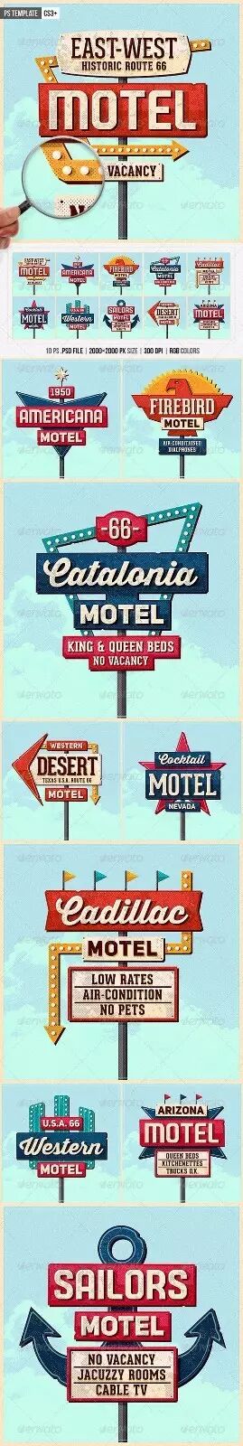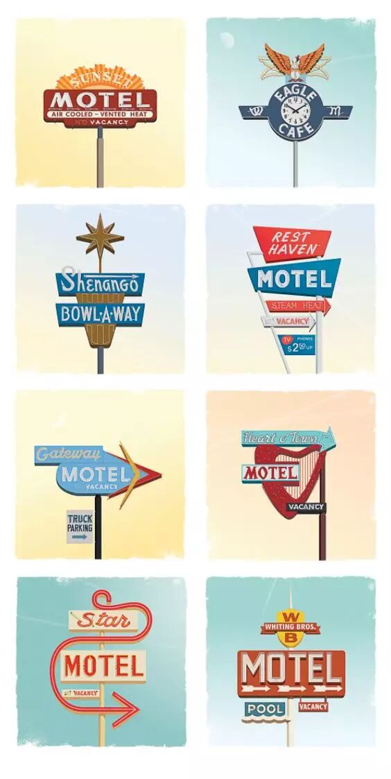 最后跟大家分享下世界各地比较有特色的Motel广告灯牌,做设计的朋友也可以参考参考!~