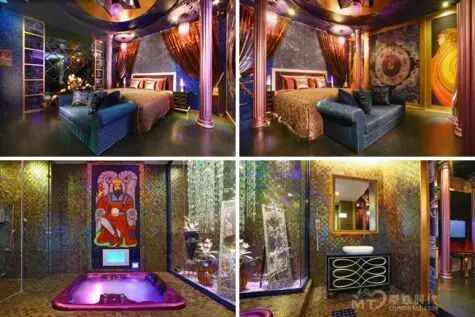 莎多堡魅力有多大,估计大陆朋友无法想象。除了梦幻的城堡外观,旅馆规划国王、皇后、城堡与骑士四种主题房型共51间。为了给住客带来层层惊喜,设计师以高互动式的设计为目标,引入各种拟真元素。如仙履奇缘房型的南瓜马车、加勒比海盗船房型的海盗船,而这均不是摆设,而是住客的超大睡床;霸王别姬房型更是将楚汉争霸大棋盘置于房内天花板,而当住客推门而入时,棋盘便会自动的转动起来。