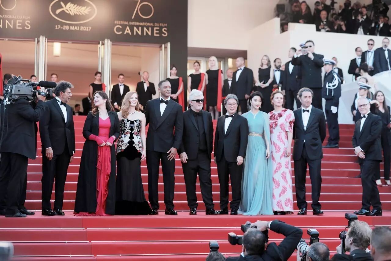 之后典礼正式开场,第70届戛纳电影节主竞赛单元评委一齐亮相!而第一位登场以及被介绍到的评委就是wuli范爷!