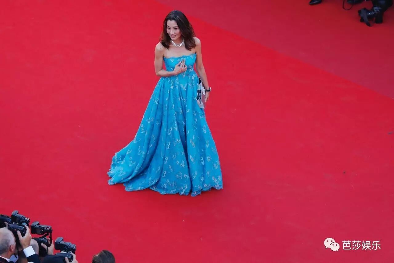 戛纳常客杨紫琼也来啦,一身个人定制款的Shiatzy Chen礼服,和戛纳的海倒是绝配!