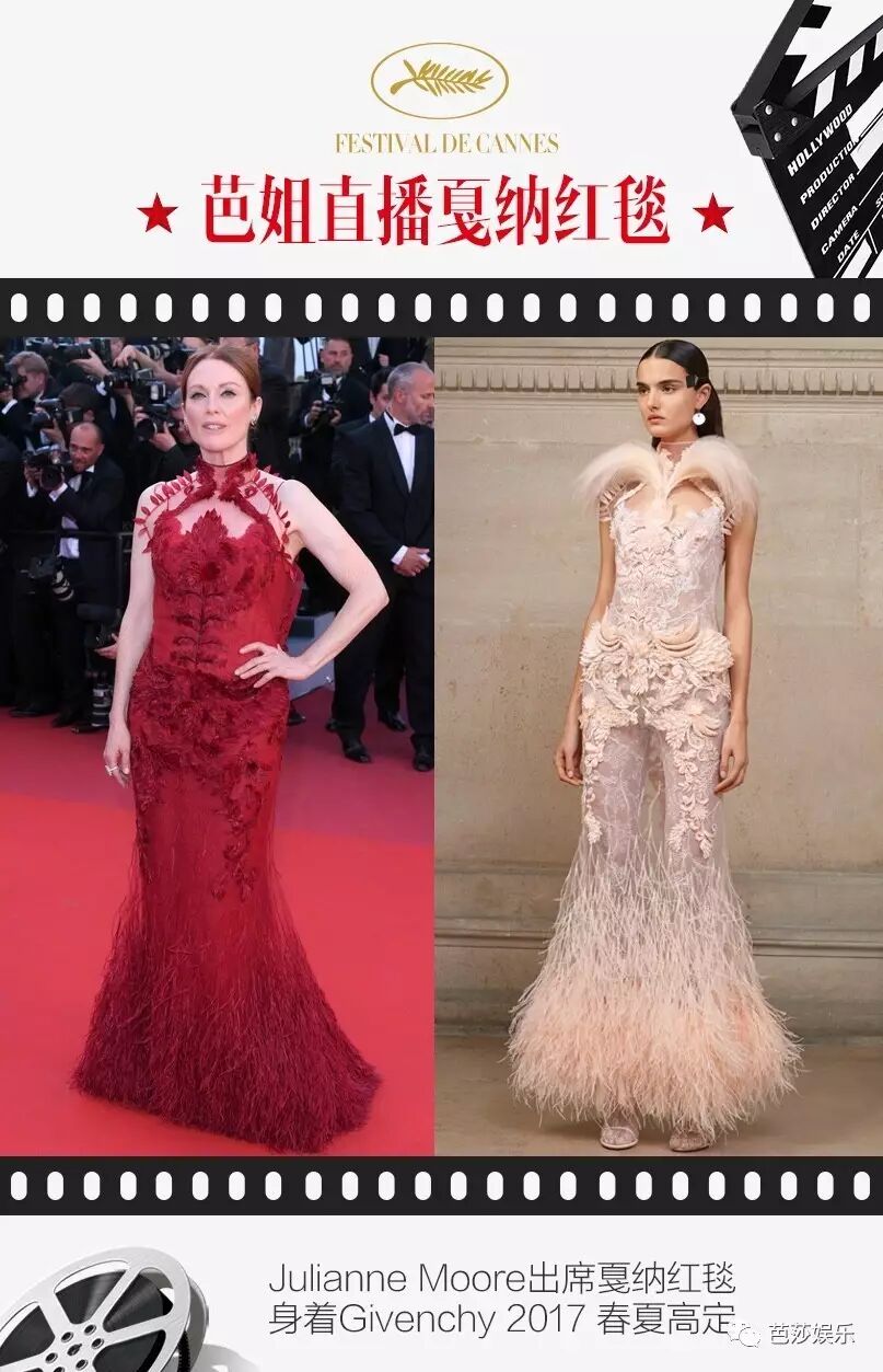 大满贯影后Julianne Moore身着Givenchy 2017 春夏高定礼服,还机智地把原有领口设计上的毛毛拿掉了,显得更加大气和雍容了