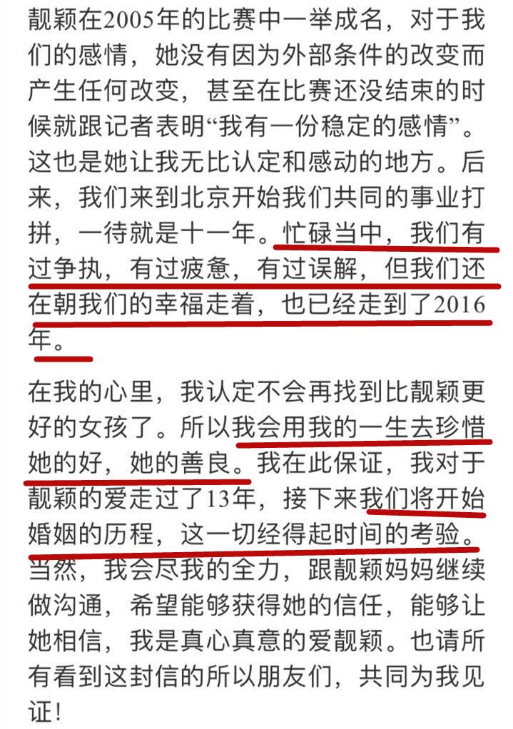 冯轲也说是他处理不当让靓颖受委屈了,愿意用一生去珍惜她。