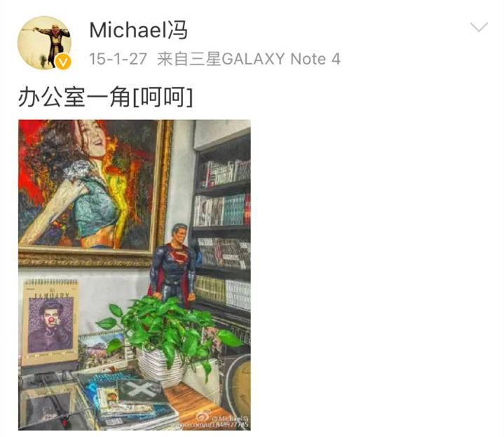 ▲冯轲办公室的背景墙就是张靓颖的人物画。