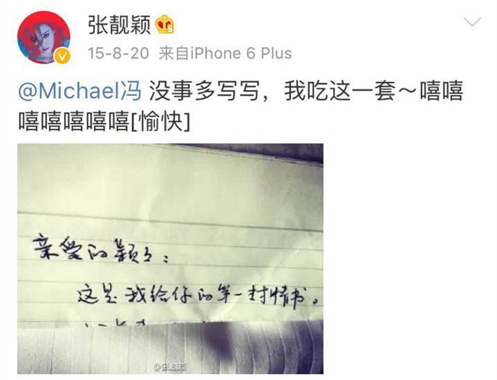 ▲冯轲也会去转张靓颖的微博内容。