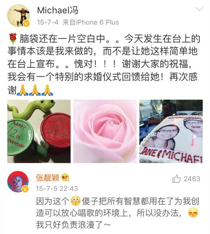 求婚事件发生时,冯轲说这是应该是我该做的,张靓颖还会贴心的在评论说都怪他不懂浪漫了~