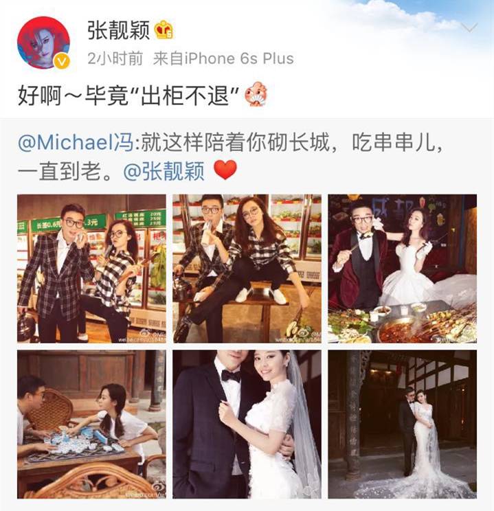 两个人也在微博上塞了一把狗粮,冯轲说要“一直到老”,张靓颖说“出柜不退”。