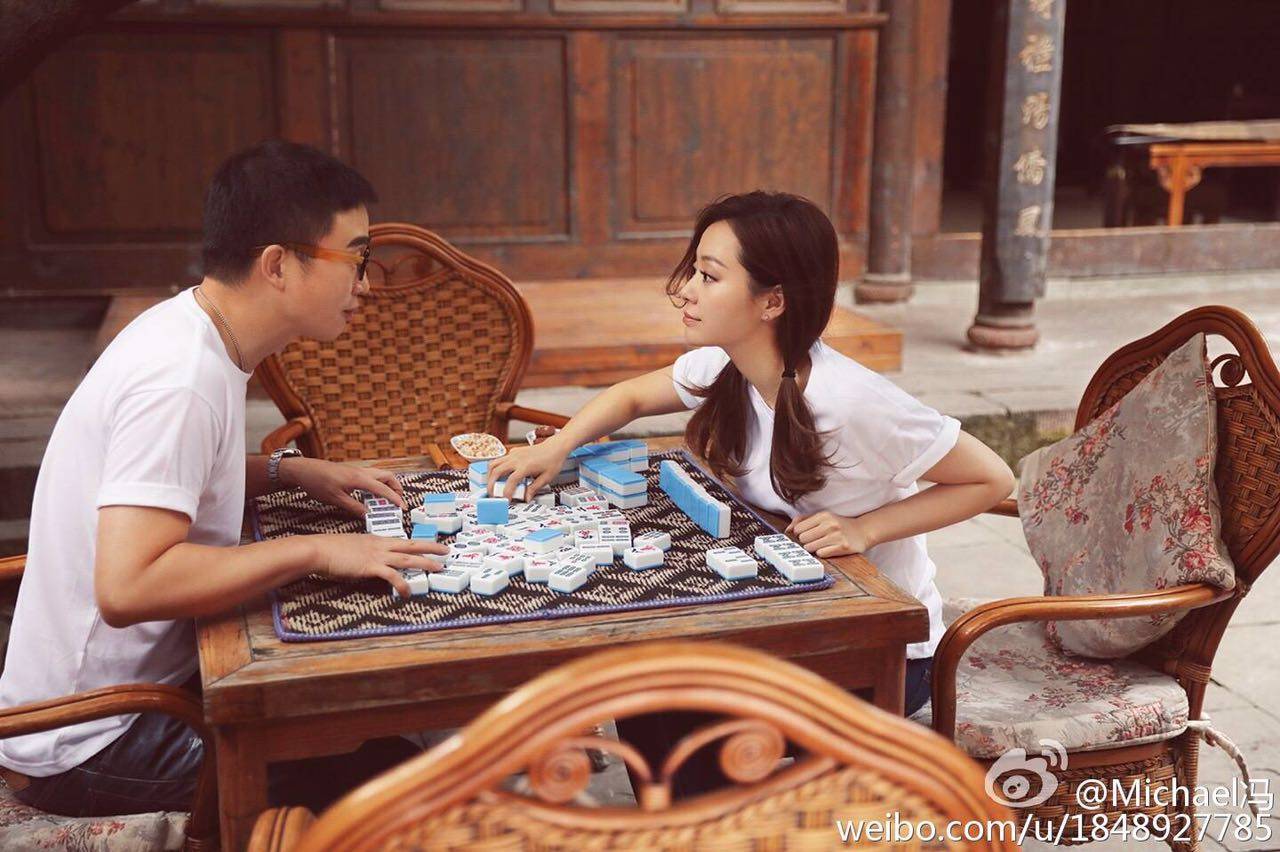因为张靓颖的老家是成都,所以冯轲陪她拍了一组很有家乡特色的结婚照片,有火锅,有麻将。