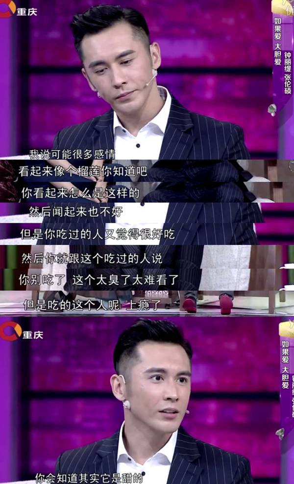 可其实当初钟丽缇上这个节目是真的抱着谈恋爱的心态来的,而张伦硕一直以来最喜欢的女星也的确是钟丽缇。于是当这两个人在节目中相遇,很多事情的发展就并不是节目组能控制的了。