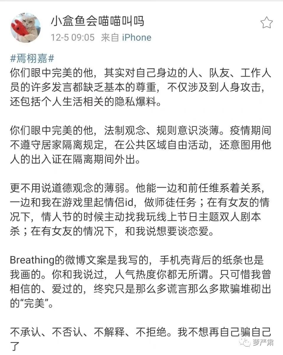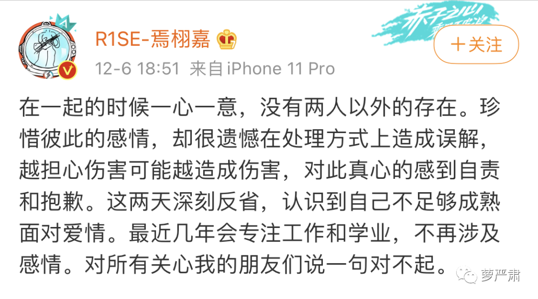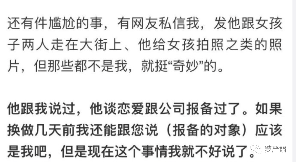 张子枫疑似恋上同班同学,全民黄磊附体了 萝严肃 内地女星 2022-02-16 23:06:21 1063 创作不易,用心坚持,欢迎请BaGua喝几杯爱心咖啡!打赏并支持本文 打赏并删除本文 转载或者合作请联系[email protected]今天一早,有媒体曝光了情人节当晚焉栩嘉带女生回家约会的视频。这个新闻的第一反应——没事,就是个糊豆,又塌房了而已。上次塌得就是又臭又糊。但是,马上传出消息说!和焉栩嘉一起被拍到的女生可能是张子枫!——突然紧张了起来!张子枫粉丝火速辟谣不是张子枫——没事,肯定不是。呃,但是,再看视频,不好,怎么越看越像张子枫了啦!!跑步的姿势差不多;视频中女生的穿衣风格也和子枫妹妹私服差不多,都是宽松工装棉服、遮得严严实实系列。细节!张子枫平时用的手机壳,和跟焉栩嘉身边女孩的手机壳是一样的。这个手机壳后面不是花纹设计而是两张卡……也就是说,如果只是“碰巧”,那张子枫和这个被拍到的女孩需要碰巧有一样的卡包设计手机壳还得碰巧都放了两张卡。再仔细找一下更了不得。2021年9月就有人爆料张子枫和焉栩嘉在一起了!焉栩嘉被偷拍这个视频,是今天早上发的,但是张子枫焉栩嘉的分手打卡博时间是昨天开始的?粉丝什么都知道系列?并且,到现在双方工作室都没有任何表态。张子枫粉丝要工作室赶紧辟谣的热搜都有几千万阅读量了,工作室就是纹丝不动。所以,张子枫和焉栩嘉有什么交集吗?不查不知道!原来他们是北影同学,有着这———么多的交集。2020年9月,张子枫和焉栩嘉一同进入2020级北电表演实验班,其他同学还包括周奇和夏梦。入学后,张子枫和焉栩嘉一起主持过北影的活动。眼神糖,有人要磕吗?焉栩嘉说话时妹妹乖乖点头,还要回头望望对方,有人要磕吗?有各种活动同框画面,相邻而坐;并肩而行。台下也挨得近,反正就是那种纯情的氛围感……(啊不想承认!)好了,再回来看媒体拍到的焉栩嘉恋爱画面,心情更复杂了。2月14号当天,焉栩嘉傍晚收工后直奔某小区接了女生回了自己家。女生包裹严实,和焉栩嘉疑似穿了情侣外套。焉栩嘉会帮女生拿东西两人开门的时候,好像对路线很熟悉的样子。两个人在焉栩嘉住处待了一晚,第二天女生先出门,下午焉栩嘉才顶着素颜离开了家。网友们:我现在好像黄磊附体。按说,就算是视演技派张子枫妹妹如女儿,也应该当个开明“家长粉”,支持女儿自由恋爱什么的。但是很多人现在的心情是:别人可以,焉栩嘉不行!他塌房塌得太惨烈了!!还记得2020年男糊豆接连塌房的惨剧吗?焉栩嘉就是其中之一→男偶像,不行。焉栩嘉,来自那个塌房率最高的中国男团R1SE。焉栩嘉的恋爱出轨瓜,关键词:一对多恋爱、被骗女性爆料、他用粉丝集资礼物送女友、女友给她改文案、爱豆道歉收费可见。2020年12月,焉栩嘉前女友“小盒鱼”连续发文并甩锤,图文并茂,称焉栩嘉劈腿、冷暴力分手。小盒鱼不仅晒了合照还放了她给焉栩嘉录的视频,真·女友视角小盒鱼发文后,很快又有名为@xxxfffff_97的网友发文称自己是焉栩嘉女友。@xxxfffff_97的真实身份也被网友发现,是演员潘成然。潘成然因为切错号发文,被公司发出了解约合同。另外还有编剧称焉栩嘉交往了不止四个女友。第一个爆料的焉栩嘉女友“小盒鱼”后来接受网易娱乐的采访表示,潘成然确实是焉栩嘉交往女友之一,编剧的爆料也是真的。焉栩嘉和小盒鱼交往时,为了稳住女方,说自己恋爱已经跟公司报备,打算退团后公布恋情。但是自从小盒鱼在微博上曝光自己与焉栩嘉的恋情后,收到很多他和其他女生走在一起、和别的女生拍照的私信。来自爆料女友的精准吐槽:不知道焉栩嘉向公司报备的恋爱对象是不是自己。焉栩嘉有个疑似小号“hippopdebest”,曾经有粉丝艾特出来喊话过。“hippopdebest”这个账号曾点赞如何治疗早×的相关内容。除了恋爱一对多让女友们不满意之外,焉栩嘉其他缺点也不少。“小盒鱼”称他没礼貌素质差,对身边的工作人员及队友都随便爆隐私和人身攻击,法制观念淡薄违反隔离规定。焉栩嘉的微博文案是女友“小盒鱼”想的,他还让小盒鱼帮自己纠正语法。当代糊豆到底是什么文化水平?塌房事件后,焉栩嘉的朋友圈表白女友的文章被网易娱乐曝光,我看完第一个想法是:他怎么可能写这么多字儿还带标点、带比喻、带成语,文通字顺的呢?这不科学!后来听说这是借鉴了粉丝写的CP文,好的,合理了。不仅如此,焉栩嘉还特别抠。焉栩嘉粉丝发现,他送给女友的拍立得疑似是粉丝们在《超新星运动会》上花了60万打投赢来的奖品。(主办方,圈钱圈得可太狠啦!!)2020年塌房后,焉栩嘉的处理方式也最别致:收费道歉。他先在微博上发文说,最近几年会专注工作和学业,不再涉及感情。——结果现在又被拍到恋爱?但是专门给粉丝的道歉,放在了付费会员可见的粉丝俱乐部里哦。路人惊讶:这是粉丝要想要个道歉,还需要另外的价格的意思???事后受伤最重的“小盒鱼”对媒体表示,没有收到焉栩嘉对自己的道歉,也不满意他不对其他女孩道歉。2021年焉栩嘉身上也有一些传闻,有疑似粉丝出来爆料他跟“小盒鱼”复合了,但是被焉栩嘉发律师函否认。某品牌钻戒事件中,焉栩嘉也在“买钻戒明星”名单中,但有粉丝出来承认是自己用焉栩嘉身份证号买的。作为男爱豆,焉栩嘉的“脸”也没有公信力。他在节目里长这样↓站姐脱粉放出的生图里,焉