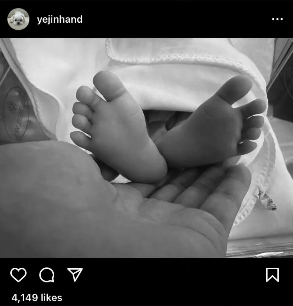 正式晋升妈妈&爸爸,并在ins晒出了孩子的小脚丫。