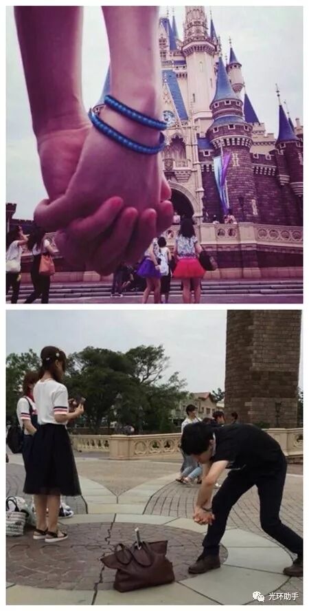 吃瓜群众如何假装有女友?一位小哥去迪士尼玩,分享了一张甜蜜的牵手照,不巧被人拍到了真相,心疼