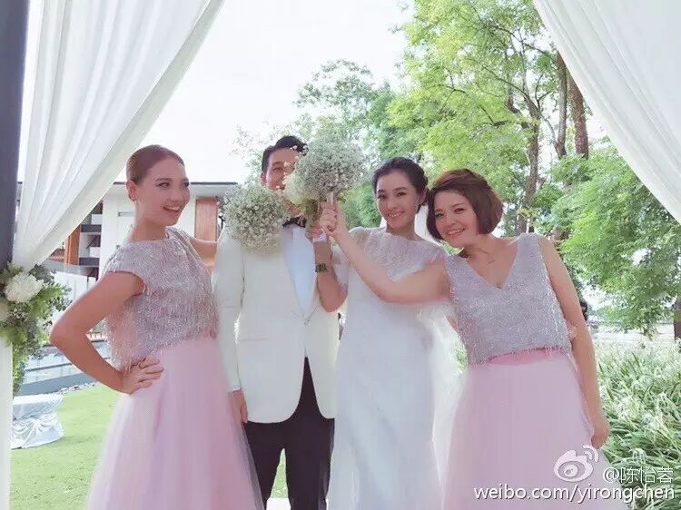 昨日,这段恋情终于开花结果,陈怡蓉和老公薛博仁在泰国清迈举行婚礼。