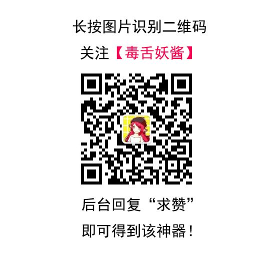 想得到该神器,扫码关注【毒舌妖酱】吧~
