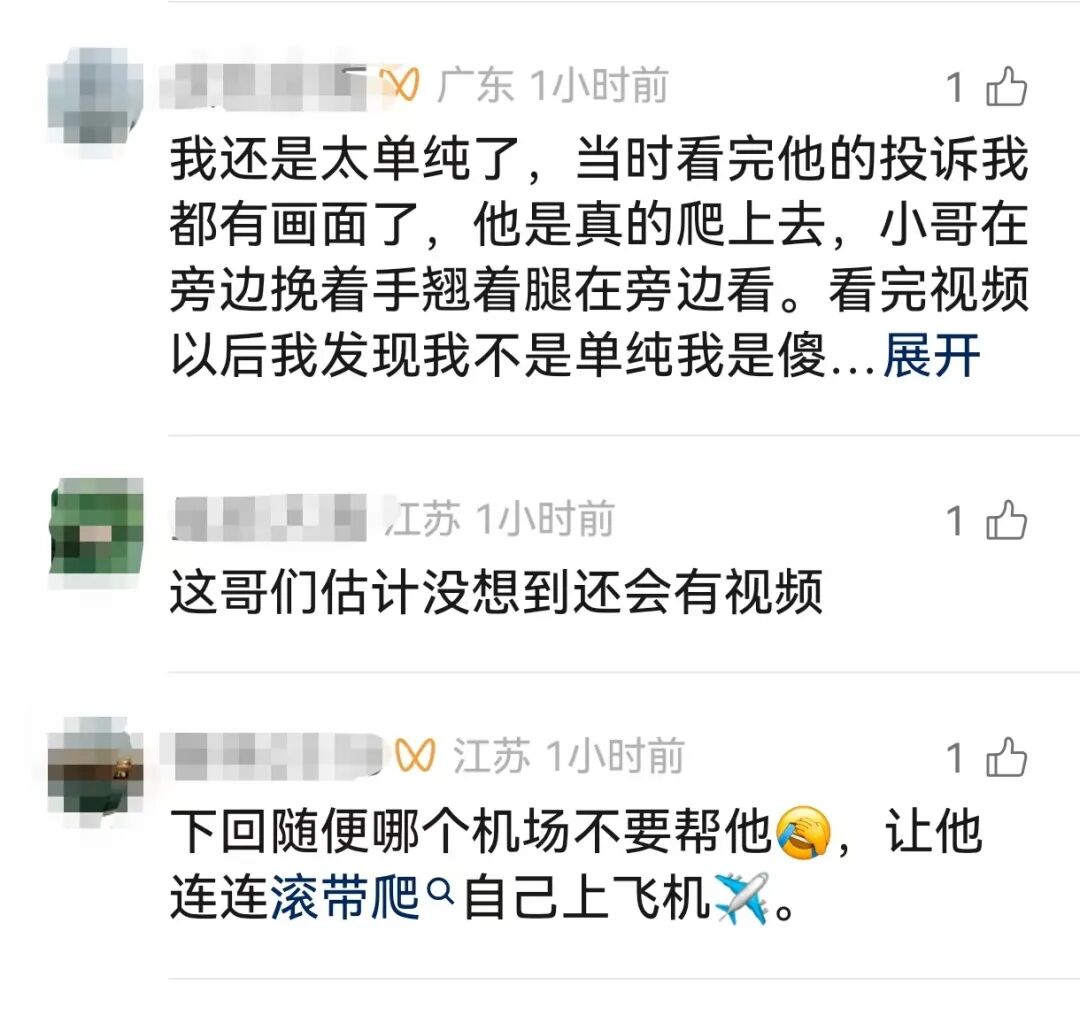 媒体最新公布的郑智化登机监控视频让这场情感共鸣戛然而止。画面显示的是与“连滚带爬”截然不同的场景:两名工作人员一左一右悉心搀扶,有空姐早早接过他手中的包,有地勤人员细心托举他的腿部协助通过机门。整个过程虽有设备与机舱间高度差带来的不便,却远非他描述的那般不堪。视频中清晰可见的帮扶动作,与“冷眼旁观”的指控形成了鲜明对比。