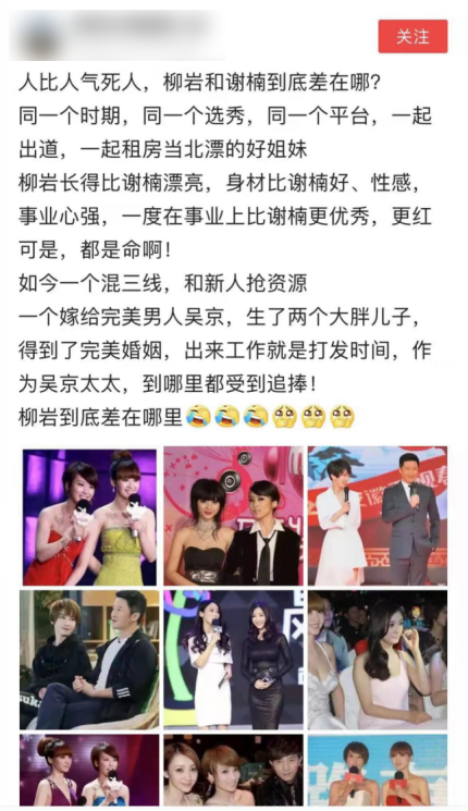 最近,在网上看到一个博主把柳岩和谢楠拿来做对比。