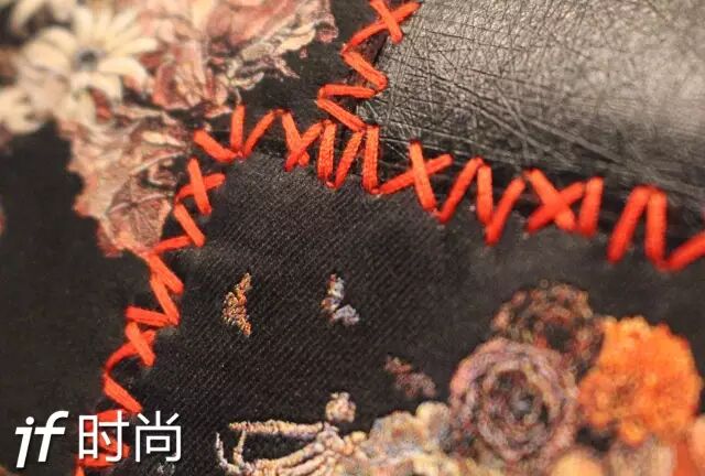 ▲边沿处有交叉缝线,将两种不同材质联结在一起,可见做工之细腻。