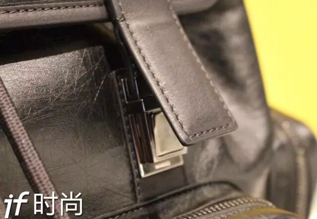 ▲包口盖通过双塔扣封口,塔扣外层有皮片遮蔽。