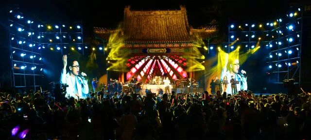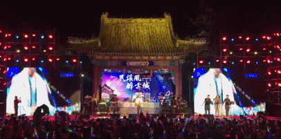 在即墨古城鸭绿池戏台,罗大佑从一首《野百合也有春天》开场,经典不断延续,游刃有余的台风,深情的歌唱,动感的舞步……两首歌曲《握手》和《思念》之后,经典的《童年》又掀起演出高潮,全场以大合唱的方式,向民谣致敬、向经典致敬。演唱之余,罗大佑与歌迷亲切互动,笑称夜空中的细雨为“空调”,亲和力十足的话语让人倍感激动。