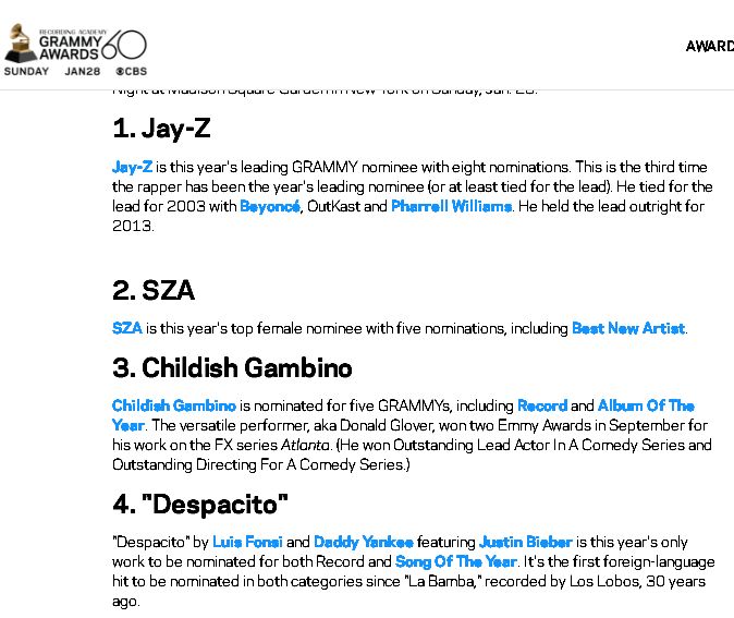 等等众多乐坛大咖都将悉数参加本届(60th)格莱美