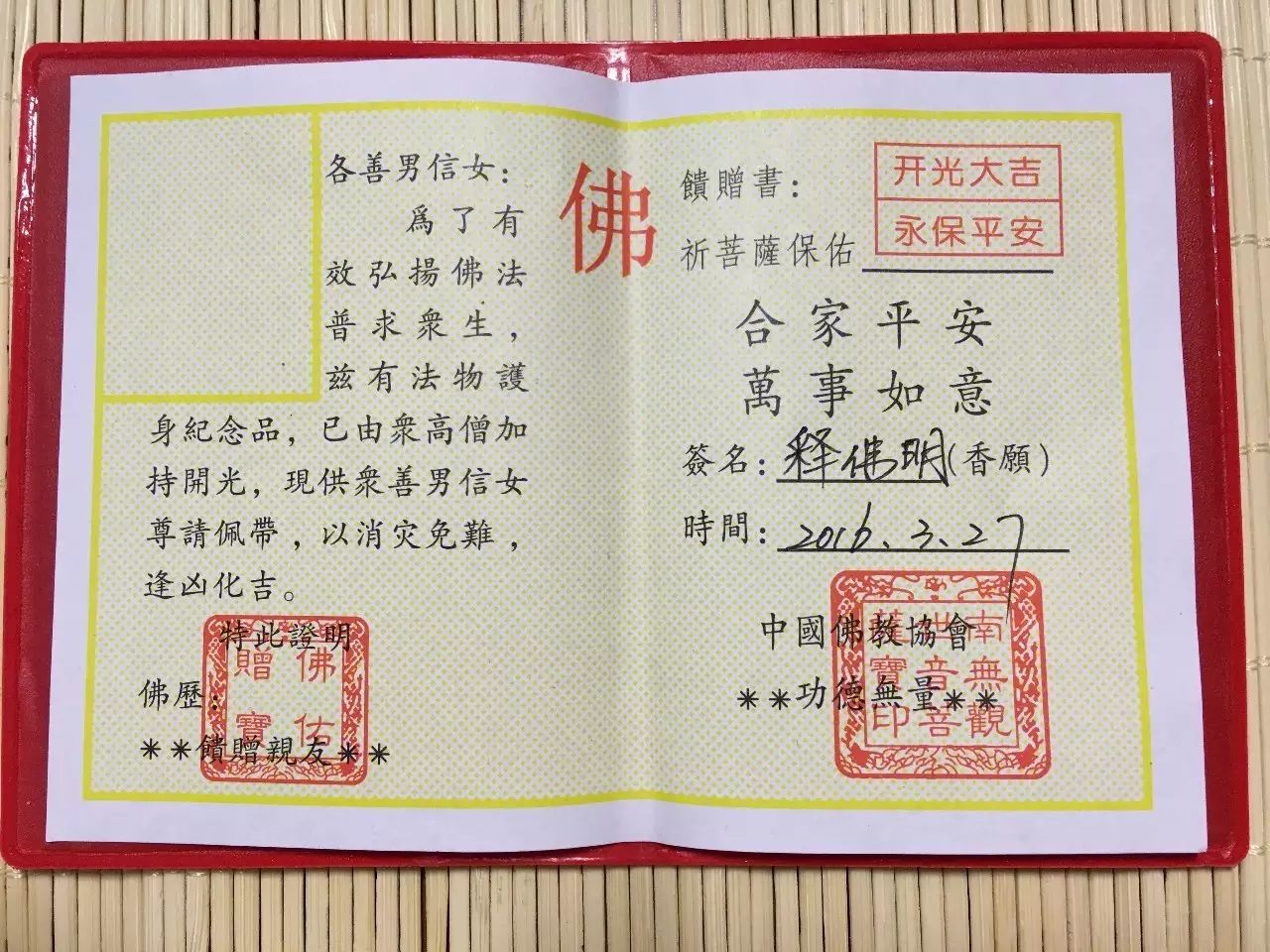 开光证书