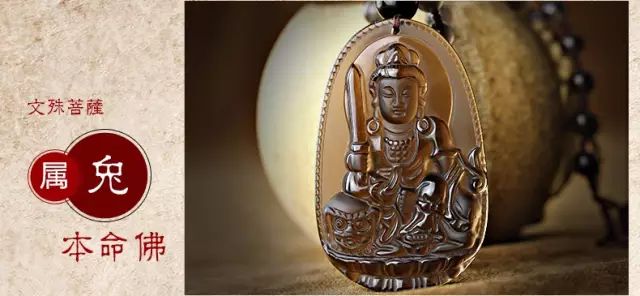 属兔人与文殊菩萨感应力最强,因此兔年生人,若能虔诚佩戴或供奉文殊菩萨之本命佛法像,能获文殊菩萨保佑加倍,增长智慧,使学业事业顺利,婚姻和谐,魔邪远离,破除一切烦恼。
