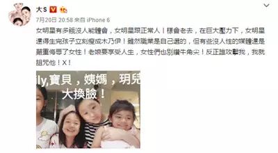 天天这么被人骂胖、老,即便是仙女也要发飙了。7月20日晚上,大S怒发微博:“女明星有多饿没人能体会,女明星跟正常人一样会老去,在巨大压力下,女明星还得生完孩子立刻瘦成木乃伊!虽然职业是自己选的,但有些没人性的媒体还是严重侮辱了女性!老娘要享受人生,女性们也别钻牛角尖!反正谁攻击我,我就诅咒他!X!”