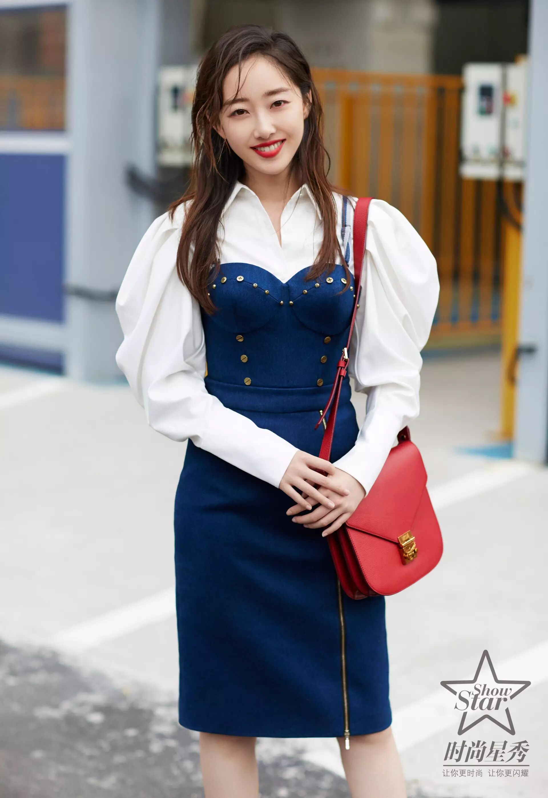 ▲蒋梦婕身穿limilXRAN系列,牛仔裙与衬衣的搭配展现摩登张力,廓型结构符合现代美学,极具青春气息。