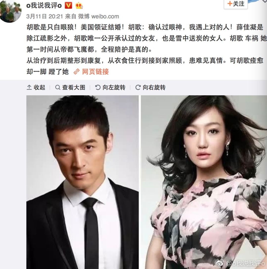 原来是有网友爆料,胡歌薛佳凝在美国领证结婚。