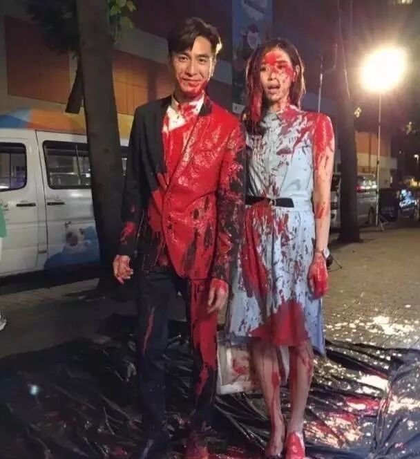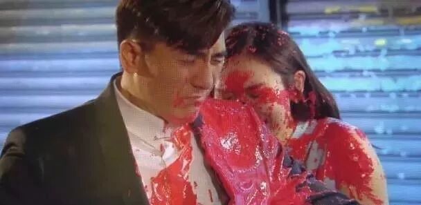 在拍摄《心理追凶》一场被淋红油的戏份时