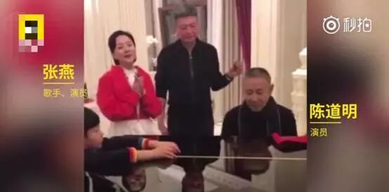 春节期间,陈道明在家里组了个局,参加聚会的基本都是文艺圈大佬。酒过三巡,估计大家情绪都比较High,陈道明和演员张燕一人弹琴一人唱歌,气氛非常好。