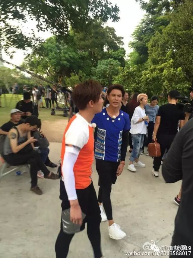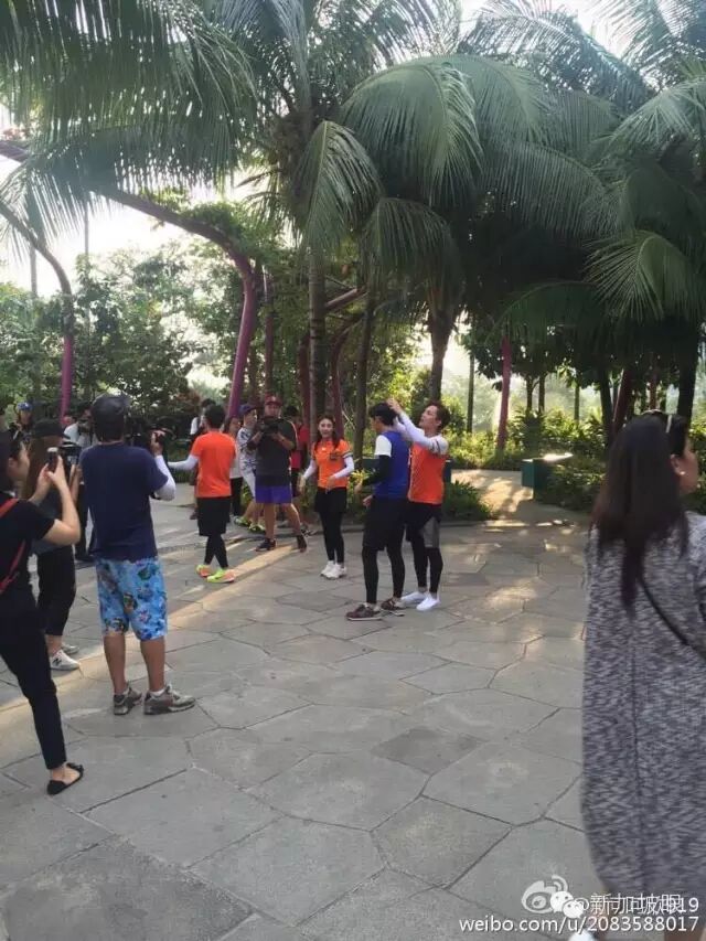 颜霸队韩庚在圣淘沙,是在欢呼胜利吗?
